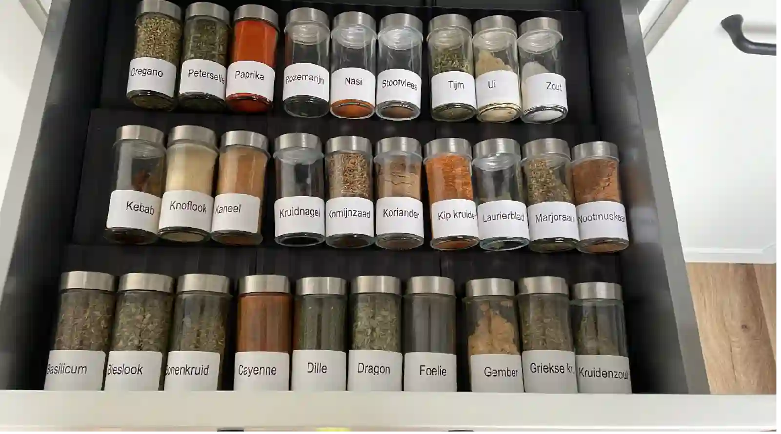 Met een kruidenla werk je efficiënter. Je hoeft niet te stoppen met koken om een kast open te trekken. De kruiden liggen overzichtelijk naast elkaar in de la. Zo blijf je in hetzelfde ritme en werk je sneller. Dit is vooral handig wanneer je een complex gerecht maakt.